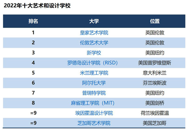 2022年世界顶尖艺术与设计大学是哪些?