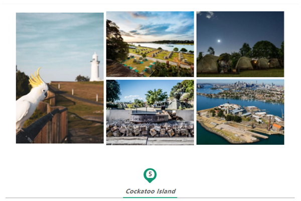 作为悉尼海港中最大的岛屿,位于 Parramatta 河和 Lane Cove 河的交汇处,Cockatoo Island 占地 18 公顷,因栖息着硫冠凤头鹦鹉而得名。这里还有露营地、豪华露营套餐、公寓或传统度假屋。