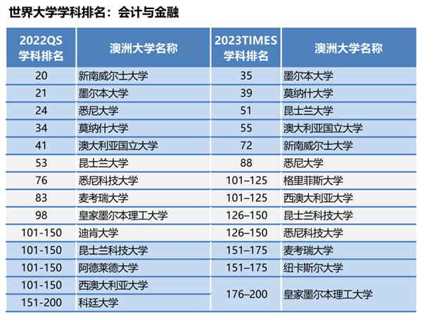 QS对比TIMES世界大学学科排名之澳洲大学-商科分支(会计和金融专业)
