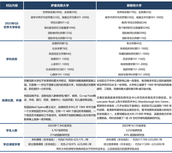 萨塞克斯和莱斯特大学在哪些方面有着过人之处,每年吸引着中国大陆学生纷纷申请,Shelley姐通过世界大学排名、学科优势、地理位置、环境、学生人数、学位课程相关费用的内容,进一步让同学对于这两所大学有更多认识。