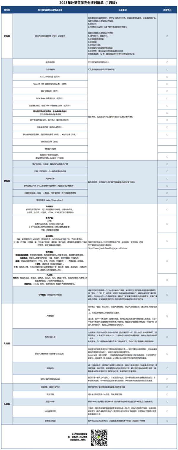 2023年赴英留学完全核对清单(1月版)