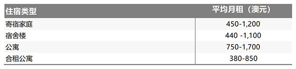 住宿因学生选择的地区和地点类型而异。澳大利亚西部和北部各州的农村地区相对便宜,而悉尼等现代地区的房价会更高。此外,学生在澳大利亚的生活费用因学生决定住在校内还是校外而异。前者平均每月花费学生440至1,100 澳元,而合租租金约为每月 380 至 850 澳元。