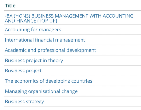 蔚蓝天府老师根据桑同学的就业选择和目标大学排位。就往年海硕学生就业情况来看,为桑同学落实银行系统招聘财会类人才专业能力基本要求(本科与硕士阶段的其中1个阶段为会计相关专业即可满足专业任职门槛),因此在专业申请上,采取商学院双专业同时申请,会计专业为主,管理大类下的人力资源、商务专业为辅。为提升前百大学录取率,海本大学课程预注册后,建议学生根据所申硕士专业学科要求和个人学习情况,合理规划选修课程,除会计必修课外,海外本科大学桑同学选修课程方向有:经济类、会计与金融类、法律类、国际商务和战略类等选修课程可供同学选择。因此必修和选修课程能更好地与人力资源管理、和东亚商务相关专业进行课程匹配,结合往年选修课程得分数据。蔚蓝天府老师建议同学选择International financial management(学科偏向为会计和金融),The economics of developing countries(经济类课程)。蔚蓝天府老师为同学添加利兹大学人力资源管理专业硕士申请,该课程需要申请者参加一门财务类相关课程,有专业延续性,即使跨专业硕士毕业难度也不大。同时还为同学选择了谢菲尔德大学东亚商务硕士专业,该专业有大部分经济类课程,也需要海外本科阶段修读一些经济类课程。