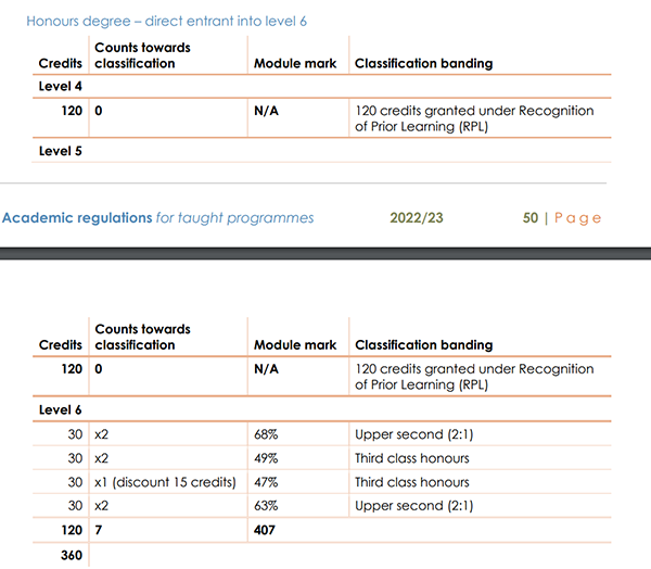 ▲英国德蒙福特大学Academic regulations for taught programmes 2022-2023: Honours degree – direct entrant into level 6
