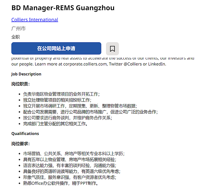 2023年高力国际-BD经理(REMS房地产管理系统)(广州)