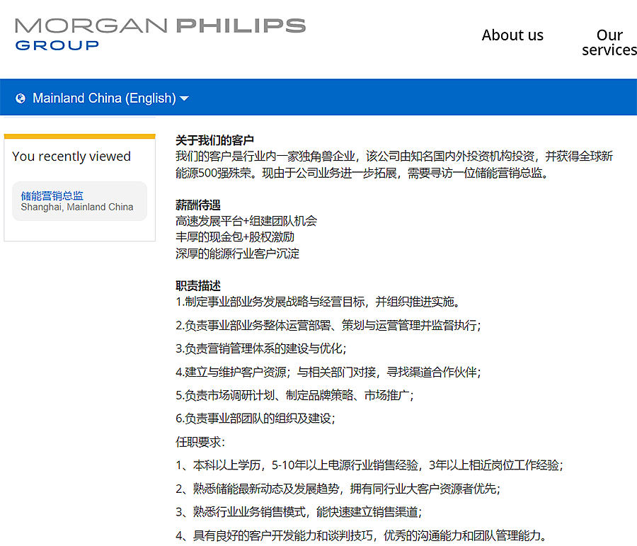 2023年摩根菲利浦-储能营销总监(上海)