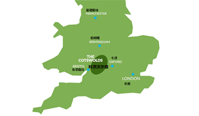 科茨沃尔德属于英格兰的西部地区,在牛津以西,伯明翰以南。科茨沃尔德不是行政区划的地区,它是贯穿在六个郡内的一条山脉构成的地区,所以也没有明确的边界划定。