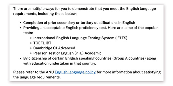 澳国立大学不再接受雅思单项重考分数的规定。但依然接受PTE Academic UKVI和雅思UKVI Academic成绩。