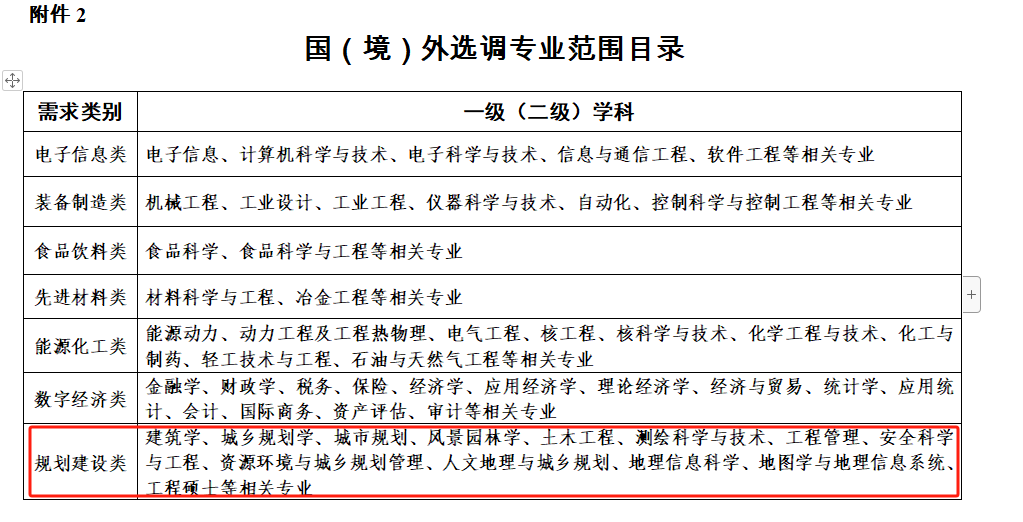 其中规划建设类涵盖了建筑、城乡规划、城市规划、风景园林、工程管理、土木工程等相关专业。