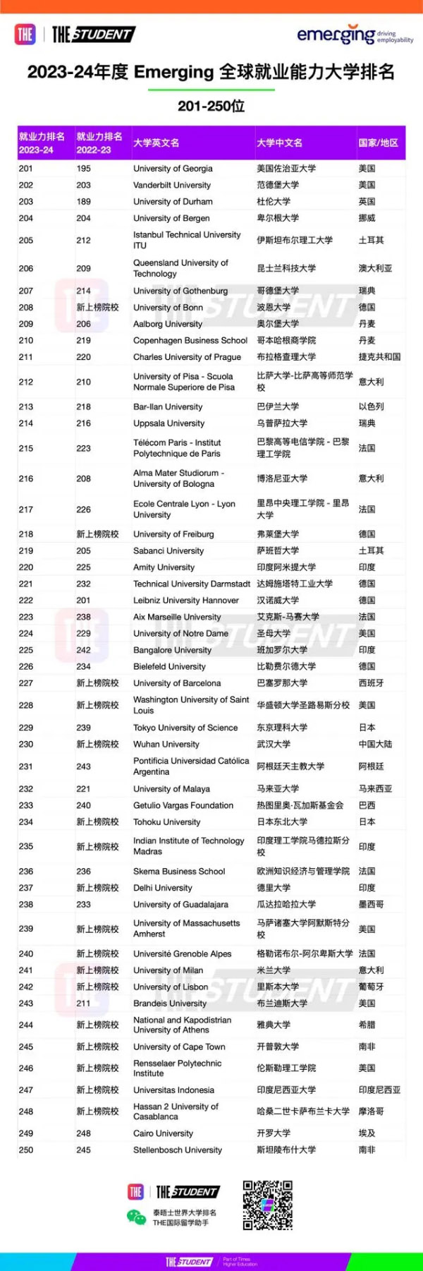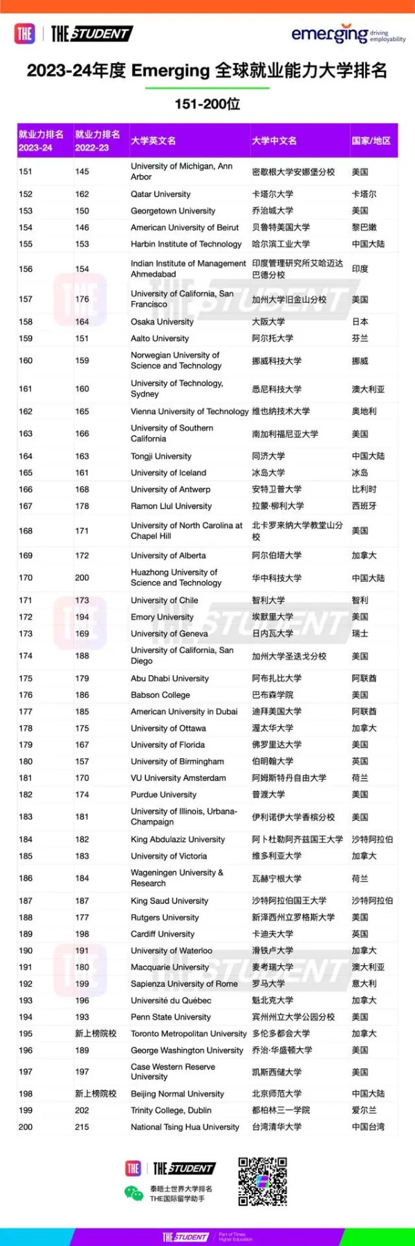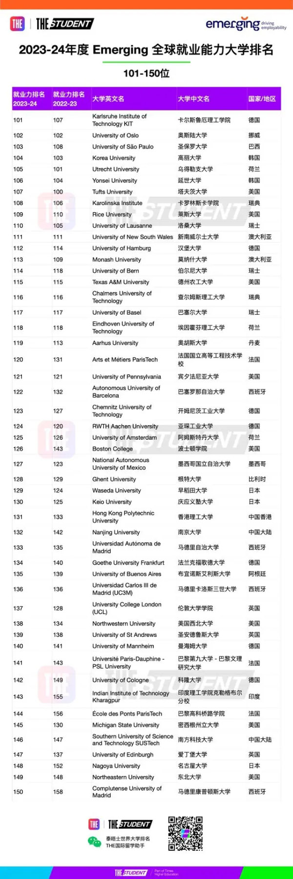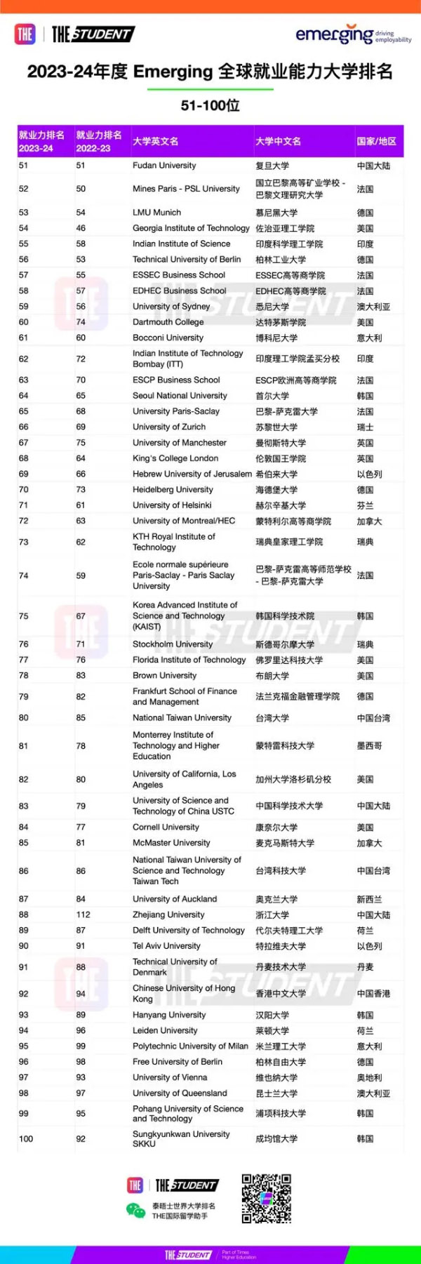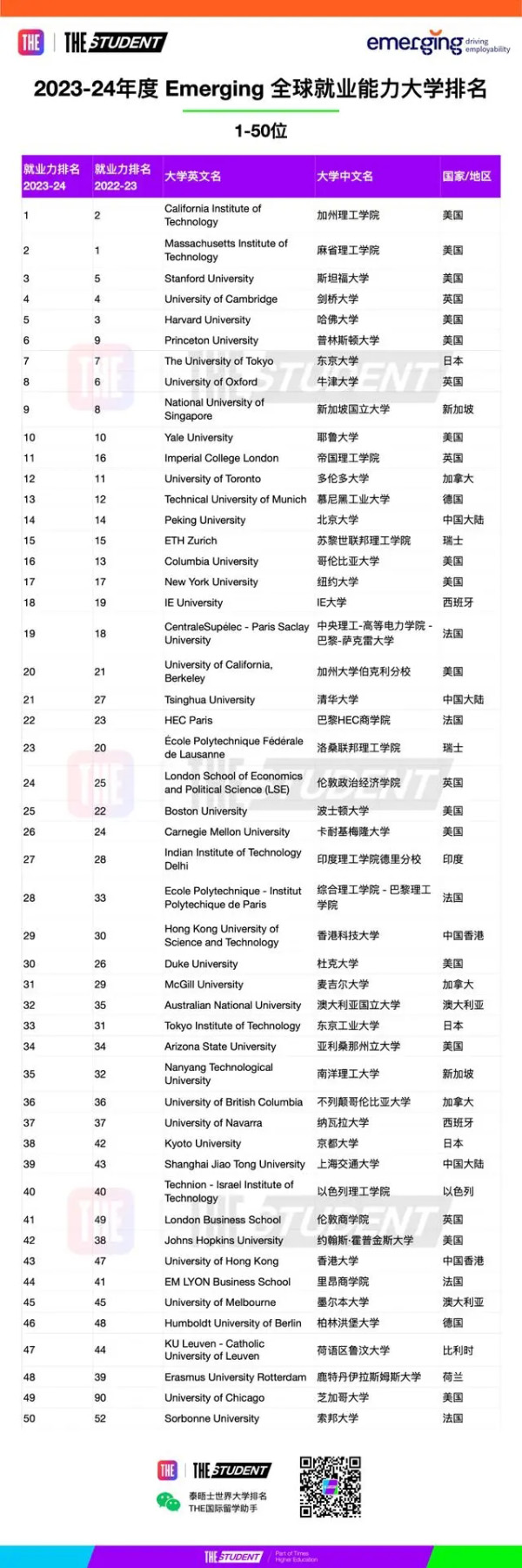 泰晤士高等教育发布了2023全球大学就业力排名