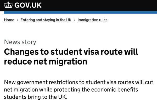 停止新来的护工签证持有者带家属前来英国,并只给受护理质量委员会(CQC)监管认证的机构的海外雇员发放护理签证。据英国内政部文件显示,该政策将在2024年尽快实施。对于博士生,英政府也会审查学生的财务能力,以证明他们可以在英国照顾自己和家属。
