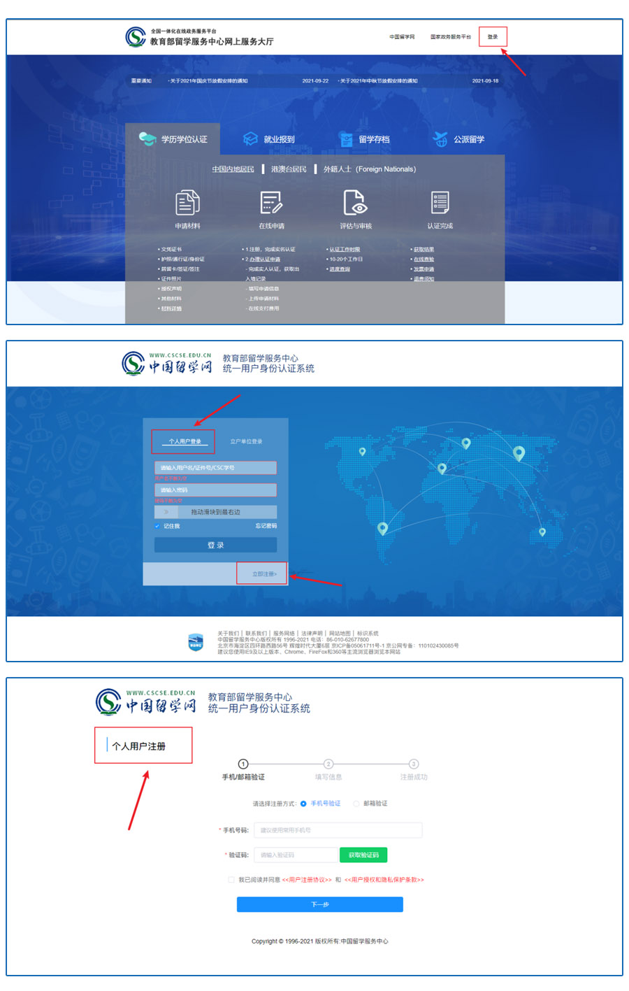 请先点击页面右上角的"登录",然后选择"个人用户登录"。若您尚未注册账户,请点击"立即注册"以完成账号的创建。