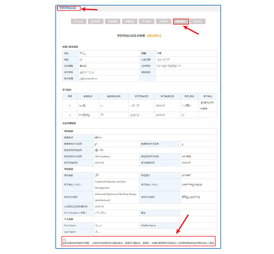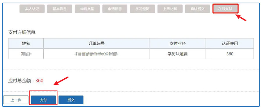 在正式提交学历学位认证申请并成功后,申请者需通过在线支付的方式缴纳认证费用。