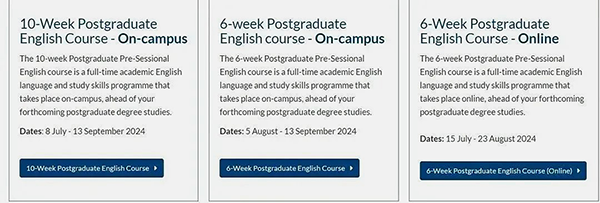 语言无法满足正课要求的同学,需根据自己的语言情况申请合适周期的语言班,为了确保位置,拿到语言班offer后,还需要支付 500 英镑的押金确认offer,该费用不予退还,将用于抵用支付所选课程的总费用。