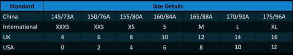 女性衣服尺码对照表