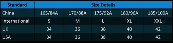 男性衣服尺码对照表