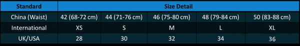 男性裤子尺码对照表