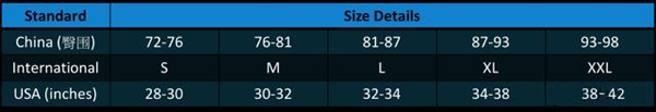 男性内裤尺码对照表