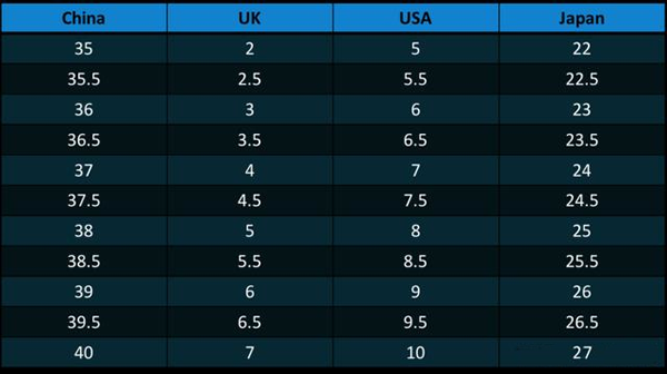 女鞋尺码对照表