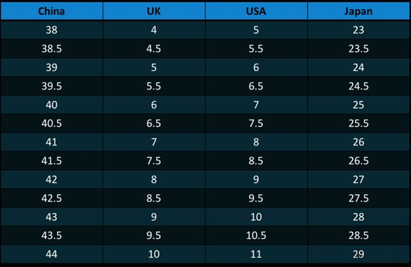 男鞋尺码对照表