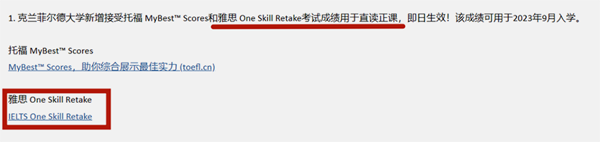 未表态是否接受雅思重考,但明确表示不接受托福重考,不接受雅思重考成绩的可能性极大。