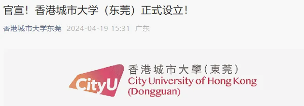 4月19日下午香港城市大学(东莞)开放申请,学校的公众号发布了如下消息: