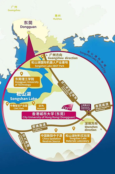 大学选址粤港澳大湾区综合性国家科学中心先行启动区松山湖科学城,周边集聚了一批大科学装置、广东省实验室、科技龙头企业等高端创新资源。