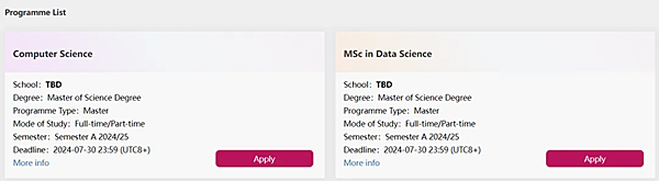 目前学校的硕士申请系统开放6个专业,后续还会有其他专业或课程开放: