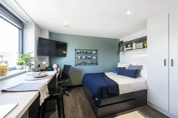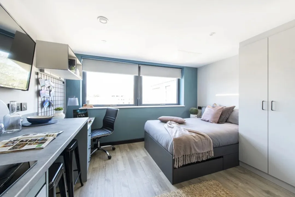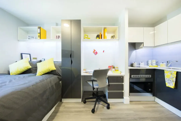 ■ 房型:公寓有单人studio和5人间ensuite可供选择,是Wembley区域房间面积最大的学生公寓之一,Platinum Studio Accessible面积可达近24平米