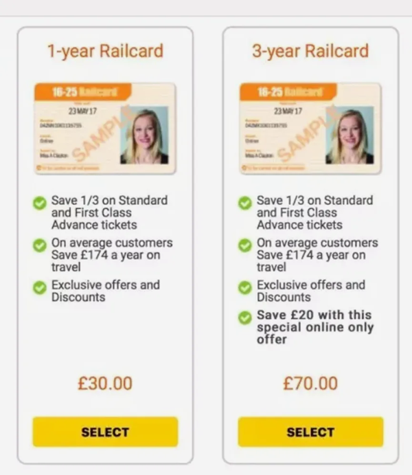 (如果您超龄了,也不要灰心,26-30Railcard也能为您节省正常票价的1/3)。