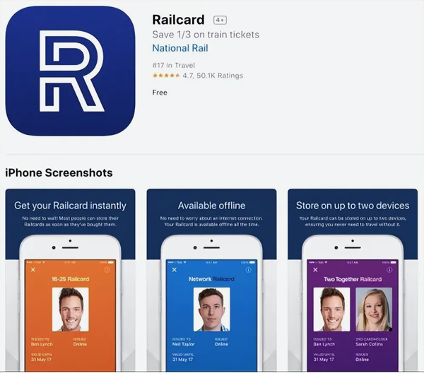 此外,你还可以下载Railcard APP,这样就算出门没带实体卡,也可以在遇到查票时出示。