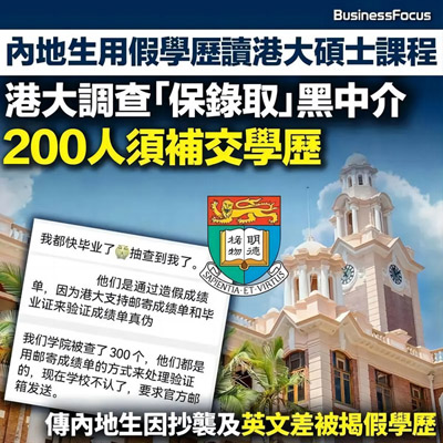 如今,这股内地生假学历入港校风波继续燃烧,更蔓延至本科!