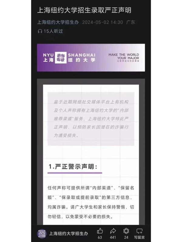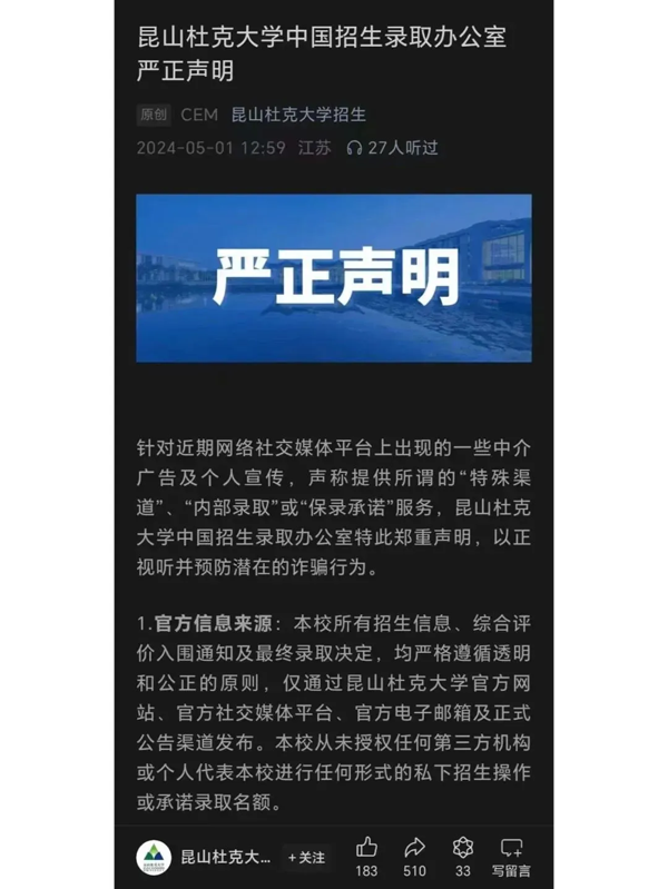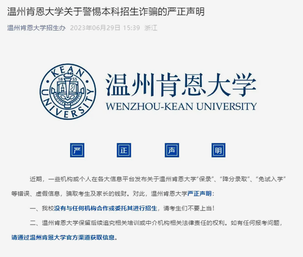 多所中外合作办学院校早已发布声明来打击保录取的行为。