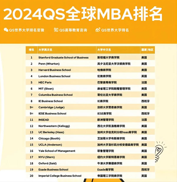2024QS全球最佳商业分析硕士排名出炉!