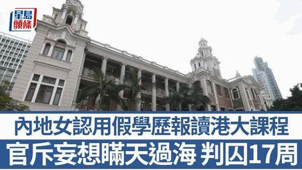 据报道,一名来自中国内地的女生因父母通过中介伪造美国学历申请香港大学,最终被判刑17周。