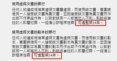 *行使虚假文书将面临罚款15万港币+入狱14年