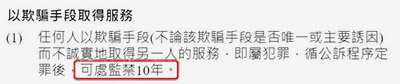 *以欺骗手段取得服务罪,一经定罪最高可判刑入狱10年