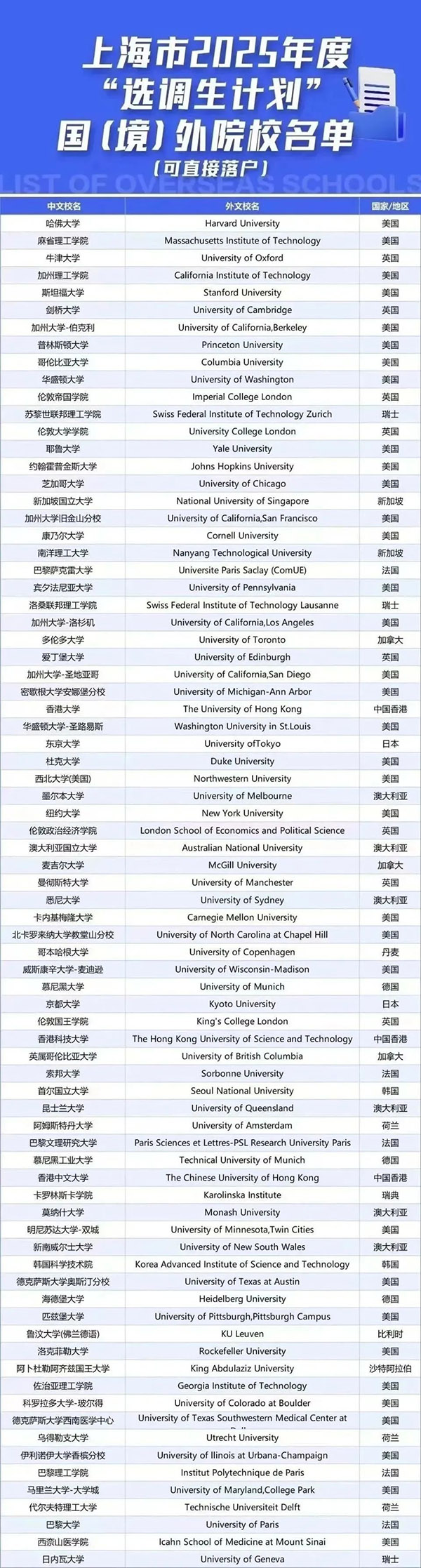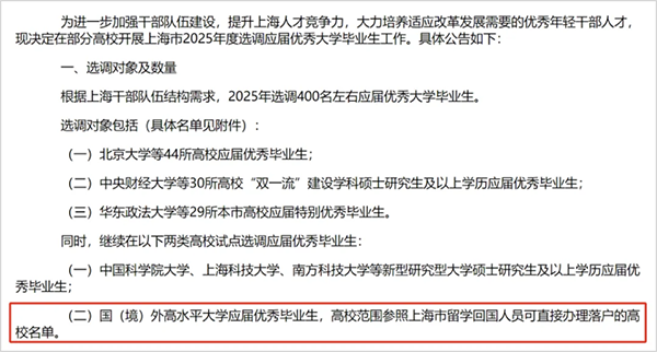 北京和上海相继发布了2025年度的选调生和“优培计划”公告。一些顶尖国外高校也被列入了“选调”“优培”名单!