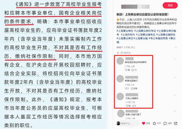 在公布2025年选调生名单后不久,上海又官宣了“取消应届生身份”的政策。