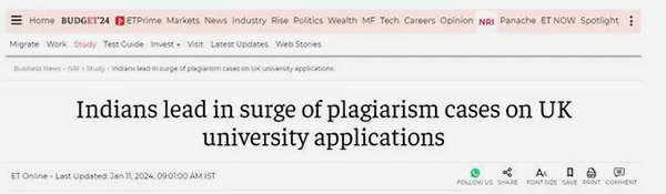 新闻称:英国对过去两年的留学申请材料做了调查,发现文书抄袭情况激增,中国学生被点名批评!