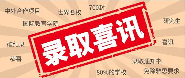 近日,国际教育学院传来喜讯,学院中外合作项目在2024-2025年海外研究生录取中,取得了令人瞩目的成绩。截至日前,已经收获近700封世界名校研究生录取通知书。且80%的学校对我们学生免除雅思要求,其中不乏全球前百院校也免除了雅思条件。